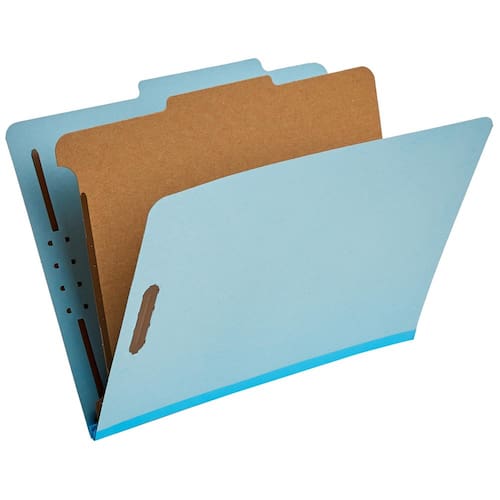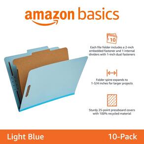 - Pastas de arquivos de classificação em azul claro (pacote com 10), cada uma com 1 divisória interna; ideal para documentos tamanho carta de 8,5 x 11 polegadas