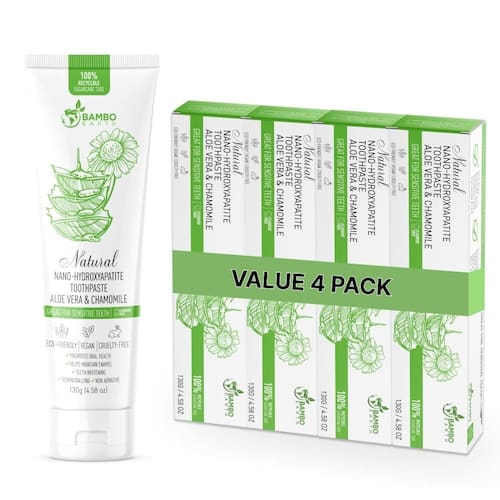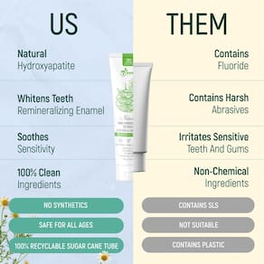 Fórmula nano hidroxiapatita (NHA) de alta qualidade para cuidados naturais de última geração! Veja a diferença com nossa pasta de dentes natural (NHA) encantada com Aloe Vera e camomila! Nossa pasta de dente é cuidadosamente projetada com cuidado e consideração para trazer a você todos os benefícios da pasta de dente natural, limpando tudo o que está preso entre seus dentes e deixando-o limpo com uma sensação de menta fresca! Também é adequado para pessoas com gengivas sensíveis! - ??Fortalece o esmalte naturalmente: Formulado com hidroxiapatita, um ingrediente clinicamente comprovado que remineraliza e fortalece o esmalte, ajudando a prevenir cáries e sensibilidade. - ??Suave para os dentes, resistente à placa: a fórmula não abrasiva remove eficazmente a placa bacteriana e as manchas sem danificar o seu esmalte, tornando-a ideal para dentes sensíveis. - ??Alternativa sem flúor: oferece uma solução segura e eficaz sem flúor para a saúde bucal, perfeita para aqueles que procuram uma abordagem natural para cuidados dentários. - ??Confiança de hálito fresco: Infundido com menta refrescante para frescor de hálito duradouro, deixando sua boca limpa e revigorada o dia todo. - ??Ingredientes limpos, seguros para todos: livre de sabores, cores e conservantes artificiais; feito com ingredientes seguros, ecológicos e sem crueldade para um sorriso mais saudável.