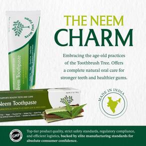 O cuidado bucal, quando feito corretamente, resulta não apenas em um sorriso brilhante, mas também em uma boa saúde geral. Nossa pasta de dente de nim é uma homenagem a esse entendimento, combinando a sabedoria milenar da Ayurveda com as necessidades atuais de higiene dental. Neem, renomada nas práticas ayurvédicas, tem sido uma pedra angular de higiene bucal, especialmente na Índia, onde é reconhecida como a "árvore da escova de dentes". Seus galhos têm sido utilizados por gerações, garantindo que os sorrisos permaneçam radiantes e gengivas saudáveis. Características e benefícios: Extratos supercríticos de folha e casca de nim Suporta dentes e gengivas saudáveis Vegano. Livre de crueldade Sem flúor Sem sulfato. Sem xilitol Sem glúten. Sem cores ou sabores artificiais Adequado para crianças e diabéticos Extrato supercrítico de folha de nim e casca Central para nossa formulação é a extração supercrítica de folha e casca de nim. Estes extratos potentes são conhecidos por ajudar no combate à placa bacteriana e possíveis cáries, garantindo que os dentes permaneçam não apenas limpos, mas também fortes e saudáveis. Pasta de dente sem flúor Mas não se trata apenas do que colocamos – é também sobre o que deixamos de fora. Nosso compromisso sem flúor significa que você está recebendo cuidados bucais que usam ervas naturalmente poderosas sem a adição de ingredientes debatidos. Ingredientes naturais 100% puros. Defendemos a pureza, e nossa pasta de dente reflete esse compromisso. Seja a ausência de sulfatos, xilitol ou elementos artificiais, ou nossas posições veganas e livres de crueldade inabaláveis, todos os aspectos são selecionados com cuidado. Originado de forma autêntica. Feita autenticamente na Índia, esta pasta de dente é mais do que um produto de cuidados dentários. É um legado, uma jornada de volta às tradições enraizadas na história. Convida você a experimentar um ritual, um ato diário de cuidado que transcende a mera rotina. Junte-se à Neem Tree Farms para tornar esta rica herança uma parte da sua vida diária. - Fórmula livre de flúor: priorizando ingredientes limpos para uma saúde bucal ideal, nossa pasta de dentes de ervas de nim é uma pasta de dente sem flúor, sem flúor ou cores ou sabores artificiais, oferecendo uma abordagem natural para cuidados dentários que não compromete a qualidade. - Sorriso saudável à base de ervas: aproveitando os benefícios potentes de extratos supercríticos de folha de nim e casca, nossa pasta de dente totalmente natural (sem flúor) é especialmente formulada para sorrisos brilhantes e suporta gengivas saudáveis, unindo antigas tradições herbais com as necessidades dentárias modernas. - Combate placas e cáries: nossa pasta de dente sem flúor é segura para adultos, adolescentes, crianças, diabéticos com extratos de sabor natural de hortelã-pimenta, cravo e estévia. Projetada para combater o acúmulo de placa bacteriana e cáries, esta pasta de dente natural ajuda os dentes a permanecerem limpos e fortes. - Puro, limpo e ético: na Neem Tree Farms, nosso compromisso com a pureza orienta cada decisão de ingrediente. Nossa pasta de dente de nim é livre de flúor, sulfatos, xilitol, glúten e aditivos artificiais, mantendo os padrões veganos e livres de crueldade para higiene bucal. - Herança de Neem: Feito autenticamente na Índia, o epicentro do legado aiurvédico centenário de Neem, nossa pasta de dente encapsula as ricas tradições da planta medicinal conhecida como Árvore da Escova de Dentes, oferecendo uma solução holística de higiene bucal para dentes e gengivas mais saudáveis.