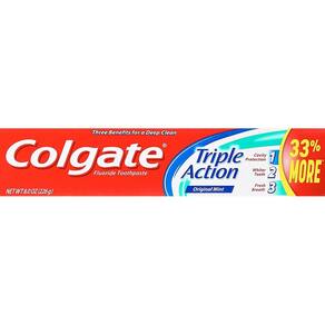 Colgate Pasta de dente tripla ação, menta - 227 g (pacote com 6) - A pasta de dente oferece três benefícios para uma limpeza profunda - Dentes mais brancos - Ajuda a remover manchas superficiais - Proteção contra cáries - Ajuda a fortalecer seus dentes - Hálito fresco - Ajuda a combater o mau hálito - Ótimo sabor de menta