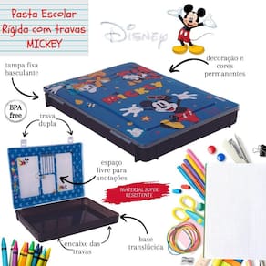 Pasta Escolar Rígida Organizadora com trava dupla e decoração do Mickey, o ratinho mais querido da Disney.
