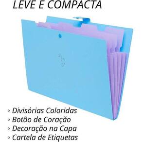 Com seu design compacto, ela ocupa menos espaço em sua mochila, permitindo que você transporte seus documentos e materiais de forma organizada e leve. As divisórias coloridas garantem a separação adequada dos papéis, facilitando a localização do que é necessário, seja em sala de aula, biblioteca ou durante os estudos fora de casa.