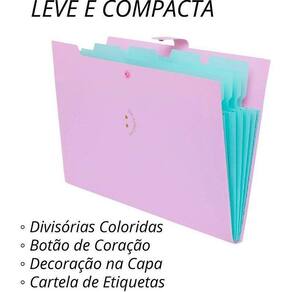 - Essa pasta possui a cor rosa pastel, trazendo um toque de delicadeza e estilo ao seu dia a dia.