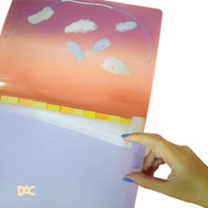 A pasta sanfonada DAC Sonhos é ótima, pois conta com 12 divisões, igualmente os meses do ano, separando todo o conteúdo mensalmente, em ordem alfabética ou importância, e, acompanha etiquetas que ajudam na identificação.