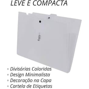 A Pasta Sanfonada Plástica A4 5 Divisões Cristal possui também uma decoração na capa, adicionando um toque de estilo e personalidade. Além disso, está disponível em 6 opções de cores, permitindo que você escolha aquela que mais combina com seu estilo.