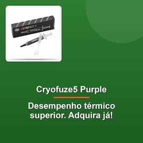 E a melhor parte: a embalagem compacta da Cryofuze 5 é eco-friendly e reduz emissões de CO2 durante o transporte. Dê um toque de cor e melhore o desempenho térmico do seu setup com a Pasta Termica Cryofuze 5 Purple! Prepare-se para elevar o desempenho térmico do seu setup com a Pasta Termica Cryofuze 5 Purple! Agora com cores vibrantes, a CryoFuze 5 combina estilo e eficiência de forma incomparável. Sua fórmula inovadora garante uma condutividade térmica excepcional, ideal para sistemas de alto desempenho. Desenvolvida para entusiastas e profissionais, a CryoFuze 5 oferece baixa impedância térmica, transferindo o calor com máxima eficiência e mantendo seus componentes sempre frescos.