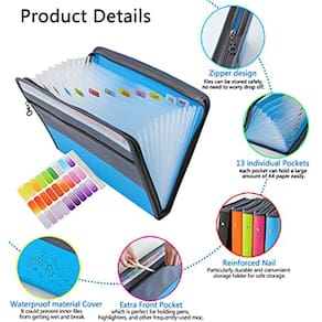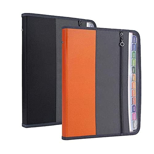 Pastas de arquivos expansíveis NAFY, pacote com 2, 13 bolsos, organizador de documentos com zíper, acordeão portátil tamanho carta, pastas de arquivos expansíveis com etiquetas multicoloridas para material escolar de escritório (preto+laranja)