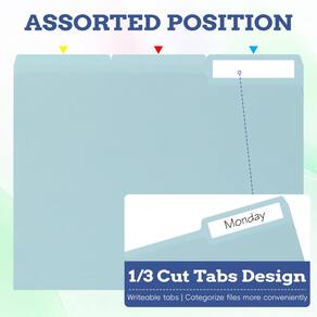 - Design de aba de corte de 1/3: as abas de corte 1/3 de três posições fornecem amplo espaço de etiquetagem para identificação rápida de conteúdo, simplificando a recuperação de documentos e melhorando a eficiência do fluxo de trabalho em qualquer configuração.