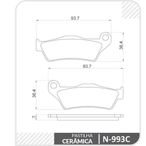 Especificações Técnicas: - Linha Racing Extreme - Ceramic; - Posição traseira e dianteira (verificar aplicações); - Pastilha de Cerâmica; - Dimensões 94 X 34 X 7mm - Código do fabricante: N-993C; - Número original (OEM): 2GS-W0045-00, 34212314947, 546 13 209 044, 5US-W0045-00, 61340721A, B97-W0045-00, DJ-1510-71, JL-1318-05.