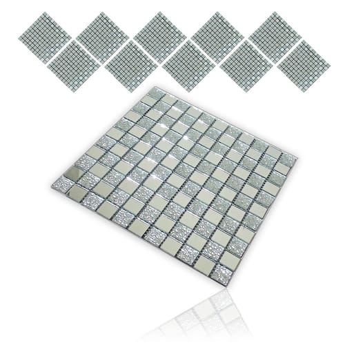 Transforme seus ambientes com esta pastilha decorativa feita de vidro verdadeiro, combinando brilho, textura e um visual moderno. O design em padrão geométrico cria um efeito visual sofisticado, com peças retangulares em tom prata e detalhes texturizados que adicionam profundidade e requinte.