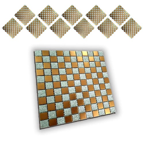 Transforme seus ambientes com esta pastilha decorativa feita de vidro verdadeiro, combinando brilho, textura e um visual moderno. O design em padrão geométrico cria um efeito visual sofisticado, com peças retangulares em tom prata e detalhes texturizados que adicionam profundidade e requinte.