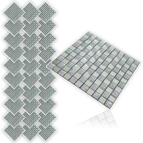 Transforme seus ambientes com esta pastilha decorativa feita de vidro verdadeiro, combinando brilho, textura e um visual moderno. O design em padrão geométrico cria um efeito visual sofisticado, com peças retangulares em tom prata e detalhes texturizados que adicionam profundidade e requinte.