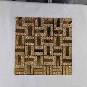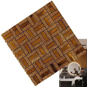 Transforme seus ambientes com esta pastilha decorativa feita de vidro verdadeiro, combinando brilho, textura e um visual moderno. O design em padrão geométrico cria um efeito visual sofisticado, com peças retangulares em tom dourado e detalhes texturizados que adicionam profundidade e requinte.