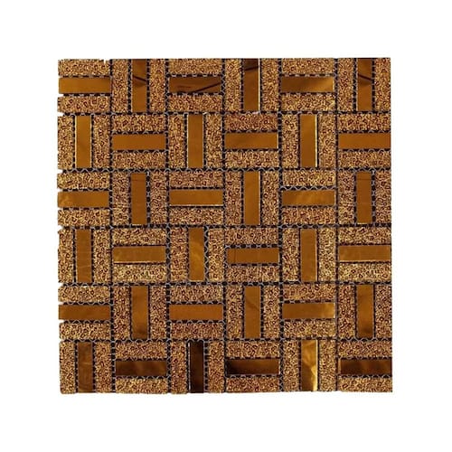 Transforme seus ambientes com esta pastilha decorativa feita de vidro verdadeiro, combinando brilho, textura e um visual moderno. O design em padrão geométrico cria um efeito visual sofisticado, com peças retangulares em tom dourado e detalhes texturizados que adicionam profundidade e requinte.