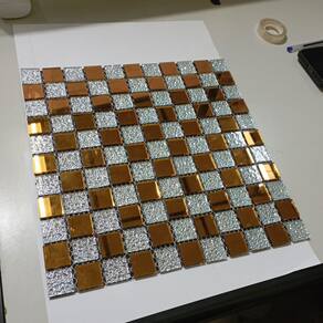 Transforme seus ambientes com esta pastilha decorativa feita de vidro verdadeiro, combinando brilho, textura e um visual moderno. O design em padrão geométrico cria um efeito visual sofisticado, com peças retangulares em tom dourado e detalhes texturizados que adicionam profundidade e requinte.
