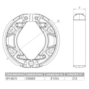 Especificações Técnicas: - Linha Urban Pro; - Aplica no tambor traseiro; - Medida padrão (Standard); - Diâmetro total (X) de 129,60mm; - Largura (Y) de 27,80mm; - Código do fabricante: PRO-DF215.