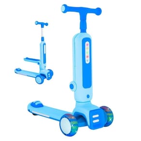 Patinete 2 em 1 Radical Infantil 3 Rodas em Pé ou Sentado Com Luz Som DM Toys DMR6936 Azul Patinete Radical 2 em 1 DM Toys