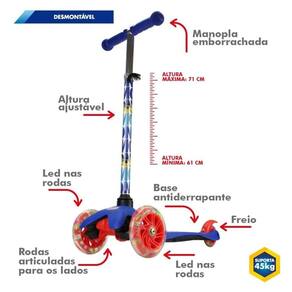 O patinete é totalmente ajustável para acompanhar o crescimento das crianças. Com altura regulável do guidão, ele é adequado para diferentes idades e alturas, proporcionando anos de diversão e aventura. Os Leds acendem ao girar as rodinhas e a base é antiderrapante.