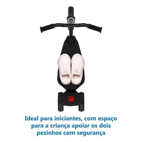 - Base mais larga: Ideal para iniciantes, com espaço para a criança apoiar os dois pezinhos com segurança.