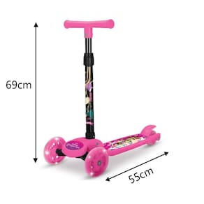 O Patinete Infantil Princesas da ETITOYS é perfeito para a diversão segura das crianças! Fabricado em aço inox e policloreto de vinil (PVC), é resistente e leve. Conta com 3 rodas (sendo 2 dianteiras e 1 traseira), todas com luzes que acendem ao girar, garantindo muito mais estilo e segurança.