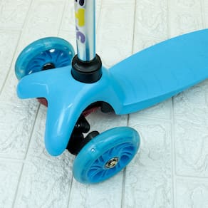 Esse patinete é bem legal, seu modelo e cores são alegres e ele é fácil para transportar, pois o guidão é removível e com isso pode ser levado para onde quiser. Suas rodas dianteiras dão mais facilidade na hora de fazer curvas. As rodas acendem luzes de led. Possui 03 opções de níveis de altura. Idade recomendada: Acima de 3 anos.