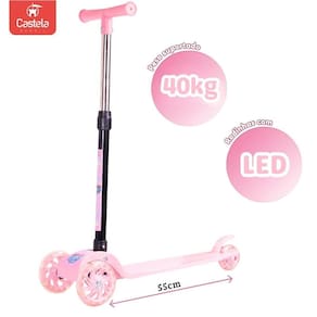Patinete Dobrável Rosa Infantil 3 Rodas Com Led - Castela DESCRIÇÃO DO PRODUTO
