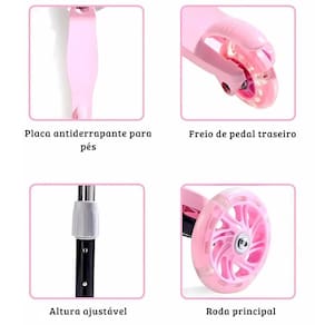 Patinete Dobrável Rosa Infantil 3 Rodas Com Led - Castela