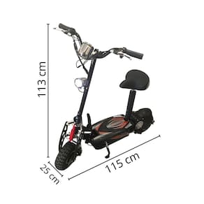 Medidas do patinete: 113 x 25 x 115 cm (altura x largura x comprimento)