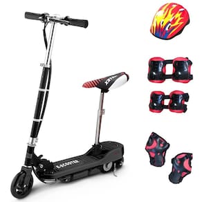 Itens inclusos: 1 Patinete Elétrico, 1 Fonte de Alimentação, 1 Assento, 1 Kit Proteção, 1 Manual (português)