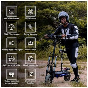 Acionamento duplo, motor único de 3.000 W, potência total de 6.000 W, super motor. A velocidade máxima é de 88 km. Muita potência para todas as suas necessidades de velocidade. A capacidade máxima de carga é de 350 kg. Lida com colinas íngremes de 45 com facilidade e está equipado com pneus de estrada, tornando o o ciclomotor elétrico ideal para adultos. Scooter de experiência de condução em modo de acionamento único e duplo o piloto pode alternar entre dois modos, modo ECO e modo de acionamento duplo. A autonomia normal no modo drive é de 120 km. A autonomia da trotinete elétrica depende de muitos fatores condições da estrada, clima, peso do condutor, travagens e acelerações frequentes, condução simples, dupla, velocidade 1, 2, 3, etc. Todo o carro é reforçado com material de liga de alumínio e é rápido e fácil de montar, podendo ser guardado no carro e em qualquer destino de transporte público. Freios a disco hidráulicos discos de e freios eletrônicos EBAS fornecem forte poder de frenagem e reduzem efetivamente a distância de frenagem. Pneus a vácuo off road de 11 polegadas aprox. 27, para maior conforto e maior capacidade off road As scooters elétricas REDDYDY são à prova dágua com classificação IPX 5. Bloqueio de chave de tensão A chave inicia a scooter elétrica e pode exibir a tensão da bateria em tempo real. Melhor proteção para a bateria e maior vida útil Marca: Não Informado