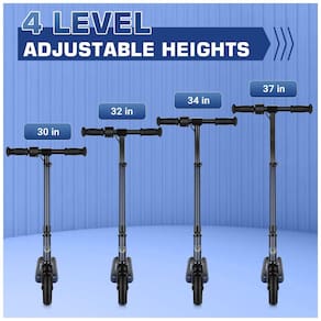 Além disso, a scooter é ajustável em três alturas para acomodar diferentes alturas e é leve e dobrável, tornando a muito fácil de transportar e armazenar.