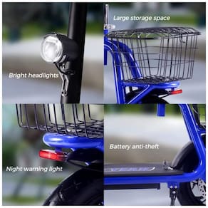 Cesta portátil e de zenamento Scooter projetada com guidão dobrável para fácil zenamento. Ocupa pouco espaço e é fácil de transportar. O tamanho da scooter elétrica depois de dobrada. Você pode carregá lo facilmente em transporte público, guardá lo em seu carro e em qualquer destino. Ótima ideia para jovens ou adultos que desejam um trajeto curto ou se divertem. Você também pode usar o carrinho de compras para colocar suas compras, livros ou sacolas. Restrição de idade 16 anos ou mais.