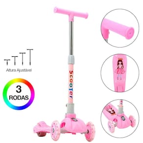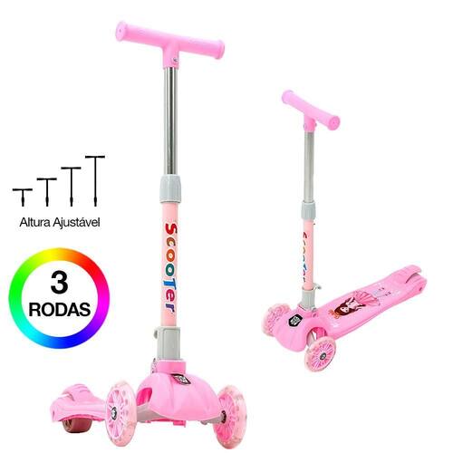 Patinete Infantil 3 Rodas Dobrável E Altura Ajustável Rosa