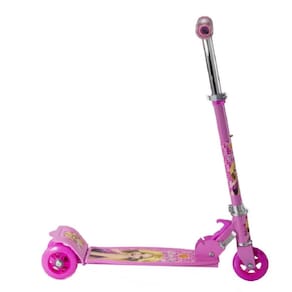 Características: Material da patinete: alumínio e ferro. Altura máxima do guidão: 75 cm. Guidão ajustável. Peso máximo suportado: 50 kg. Possui 3 rodas de PVC. É dobrável.