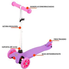 Desperte a Aventura com o Patinete Infantil Best Race com três rodas. É isso mesmo! Com o patinete infantil Best Race, sua filha irá desfrutar de momentos inesquecíveis cheio de emoções e velocidade. Com as cores Roxo e Rosa, esse patinete oferece diversão garantida para as pequenas aventureiras. Possui materiais de alta qualidade, estrutura durável e resistente, garantindo segurança e estabilidade durante as brincadeiras ao ar livre. É a opção ideal para estimular o equilíbrio, a coordenação e a concentração de qualquer criança. Desenvolvendo suas habilidades motoras enquanto se diverte. Além disso, o patinete é totalmente ajustável para acompanhar o crescimento das crianças. Com altura regulável do guidão, ele é adequado para diferentes idades e alturas, proporcionando anos de diversão e aventura. Este modelo permite que seja desmontado, facilitando na hora guardar ou levar em viagens.