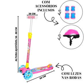PATINETE INFANTIL COM 03 RODAS, LUZ, KIT PROTEÇÃO E ACESSÓRIOS - DMR5549