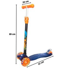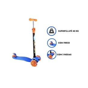 Não recomendável para crianças menores de 3 anos. Montar sob a supervisão de um adulto. Patinete radical possui 03 rodas, sendo 02 dianteiras, o que dá mais estabilidade para a criança. Utilizar equipamento de proteção: capacete, munhequeiras, joelheiras e cotoveleiras. Com luz nas rodas.