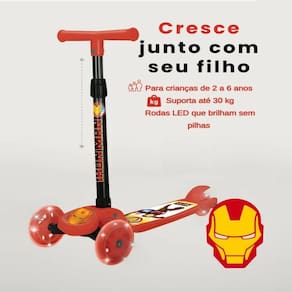 Patinete Infantil Avengers Homem de Ferro 3 Rodas com Luz
