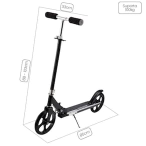 Medidas do patinete: 98 x 28 x 90 cm (altura x largura x comprimento)