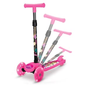 O Patinete Infantil Princesas da ETITOYS é perfeito para a diversão segura das crianças! Fabricado em aço inox e policloreto de vinil (PVC), é resistente e leve. Conta com 3 rodas (sendo 2 dianteiras e 1 traseira), todas com luzes que acendem ao girar, garantindo muito mais estilo e segurança.