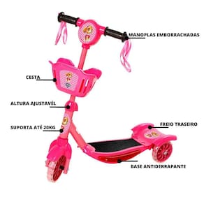 Patinete Infantil da Skye Patrulha Canina é incrível, possui manoplas emborrachadas e 3 rodas que ajudam a dar mais estabilidade e segurança para criança que ainda está aprendendo a andar, desenvolvido em material leve e resistente, fácil de transportar para brincar em qualquer lugar Características: - Cesta- Freio traseiro- Manoplas EmborrachadasCor: RosaMaterial: Plástico e Alumínio Patinete utiliza 03 pilhas AA Não inclusas Peso máximo suportado: até 20 kg Patinete de tres rodas, cestinha, criança, infantil, dm toys, led, feminino, rosa, meninos, brinquedo, meninas, skye, patrulha canina, desenho, marshal, cachorros, paw patrol