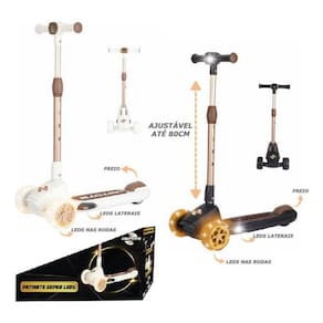 Patinete Super Leds 3 Rodas Branco Deixe a imaginação das crianças correr solta! Um brinquedo moderno e cheio de estilo que transforma cada passeio em uma experiência divertida, colorida e cheia de energia. Com design ergonômico e rodas com luzes de LED, proporciona equilíbrio, segurança e muito brilho a cada movimento, tornando a brincadeira ainda mais encantadora! Feito com materiais resistentes e seguros, é ideal para estimular a coordenação motora, o equilíbrio e a confiança das crianças. O guidão ajustável acompanha o crescimento, e as rodas largas garantem estabilidade e conforto durante o uso. Um brinquedo perfeito para quem adora se divertir com estilo e movimento!