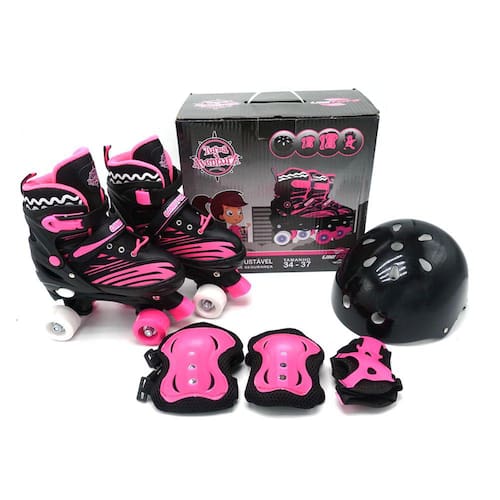 Itens Inclusos: - 01 Patins 1791 tamanho 30 ao 33 Preto/Rosa - 01 Capacete de proteção preto - 01 Par de joelheiras - 01 Par de cotoveleiras