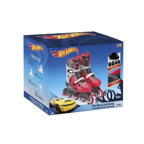 Código de Barras: 7898039604497 Código de Referência: F0011-1 Marca: Fun Série: Hot Wheels Modelo: Patins Ajustáveis Hot Wheels Tamanho 37-40 Idade: +6 Anos Acompanha Acessórios de Segurança: Sim Tamanho: 37 a 40 Inmetro: ce-bri/innac-02115-000 nm 300/2002 ocp 0061