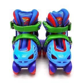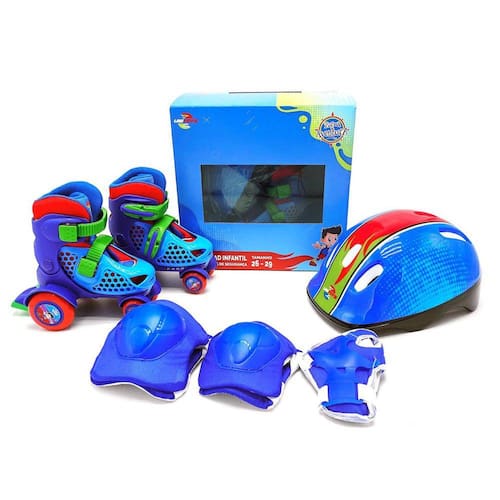 Patins infantil roller quad iniciante unitoys com kit proteção Cor: azul Tamanho: 26-29 Patins infantil roller quad iniciante unitoys com kit proteção O patins quad iniciante da turma da aventura 4 rodas auxilia no equilíbrio e coordenação motora da criançada em seu primeiro contato com o esporte de rodas, conta com o kit de proteção que protegerá a criançada ao aprender. Suas 04 rodas garantem mais estabilidade e segurança para quem está aprendendo a andar. Com ajuste rápido entre os números 26 e 29 ele se encaixa rapidamente aos pés, e garante o uso por mais tempo. São feitos em material leve e resistente, com botas acolchoadas, aumentando o conforto e mantendo a resistência e durabilidade. Especificações: - dimensões da embalagem cla : 37 x 21 x 29 cm - recomendado para lazer e esporte - bota interna em tecido de algodão forrado com espuma - ajustável em 4 números 26-29 - rodas de pvc - freio traseiro - peso máximo suportado: 45 kg - marca: unitoys - certificado de segurança: inmetro