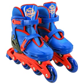 Conteúdo da Embalagem: - 1 Par de Patins 4 rodas Inline Ajustável da Turma da Aventura tamanho 34-37 - 1 Kit de proteção para cotovelos, joelhos e capacete