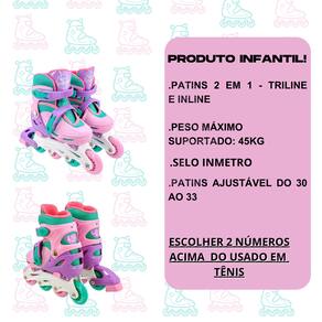 Patins Inline Triline Multiuso Infantil com Kit de Proteção 30 ao 33