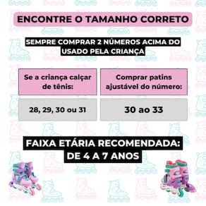 - Tamanho Ajustável: Ajuste fácil do tamanho 30 ao 33, permitindo que o patins cresça com a criança.