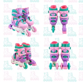 Apresentamos o Patins Multiuso Ajustável Rosa, modelo 1505 da Uni Toys, projetado especialmente para oferecer às crianças uma introdução segura e divertida ao mundo da patinação. Este patins único combina o melhor dos dois mundos com sua configuração "Tri Line", que dispõe de quatro rodas em uma formação triangular duas rodas laterais traseiras e duas frontais alinhadas uma atrás da outra. Esta disposição inovadora proporciona uma base de apoio ampliada, garantindo maior estabilidade e segurança para os pequenos patinadores em comparação aos modelos "In Line", que possuem todas as rodas alinhadas em sequência.