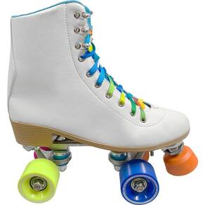 Patins Quad OWL Sports Rainbow Aluminum Tamanho: 35 O Patins Quad OWL Sports Aluminum é o mais novo lançamento da OWL para o segmento premium Conta com botas em material sintético, no formato cano alto, trazendo conforto e muito estilo. Podendo ser em qualquer tipo de asfalto. Os patins aluminum contam com base de aluminio e freios ajustaveis, rodas em poliuretano fundido PU com 53mm de diâmetro e rolamentos ABEC-11, aliando performance, qualidade e durabilidade. Suporta até: 120kg -truck de alumínio injetado sob pressão. - Eixo do Truck em Aço Carbono 1045. - Base em aluminio injetado - Rodas em Polyurethane Shore 85A.Derramado - Porcas Autotravantes e parafusos em aço. - Rolamentos ABEC 9. - Amortecedores em TPU Shore 80A. - Sola da Bota em PVC Shore 85A. - Bota em tecidos sintéticos. - Peso aprox. Dos patins: 3,5 kg. - Suporta até 150kg. Marca: Não Informado